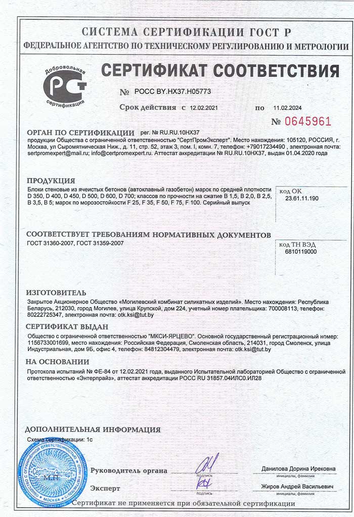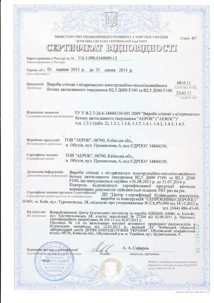 Сертификаты газобетона